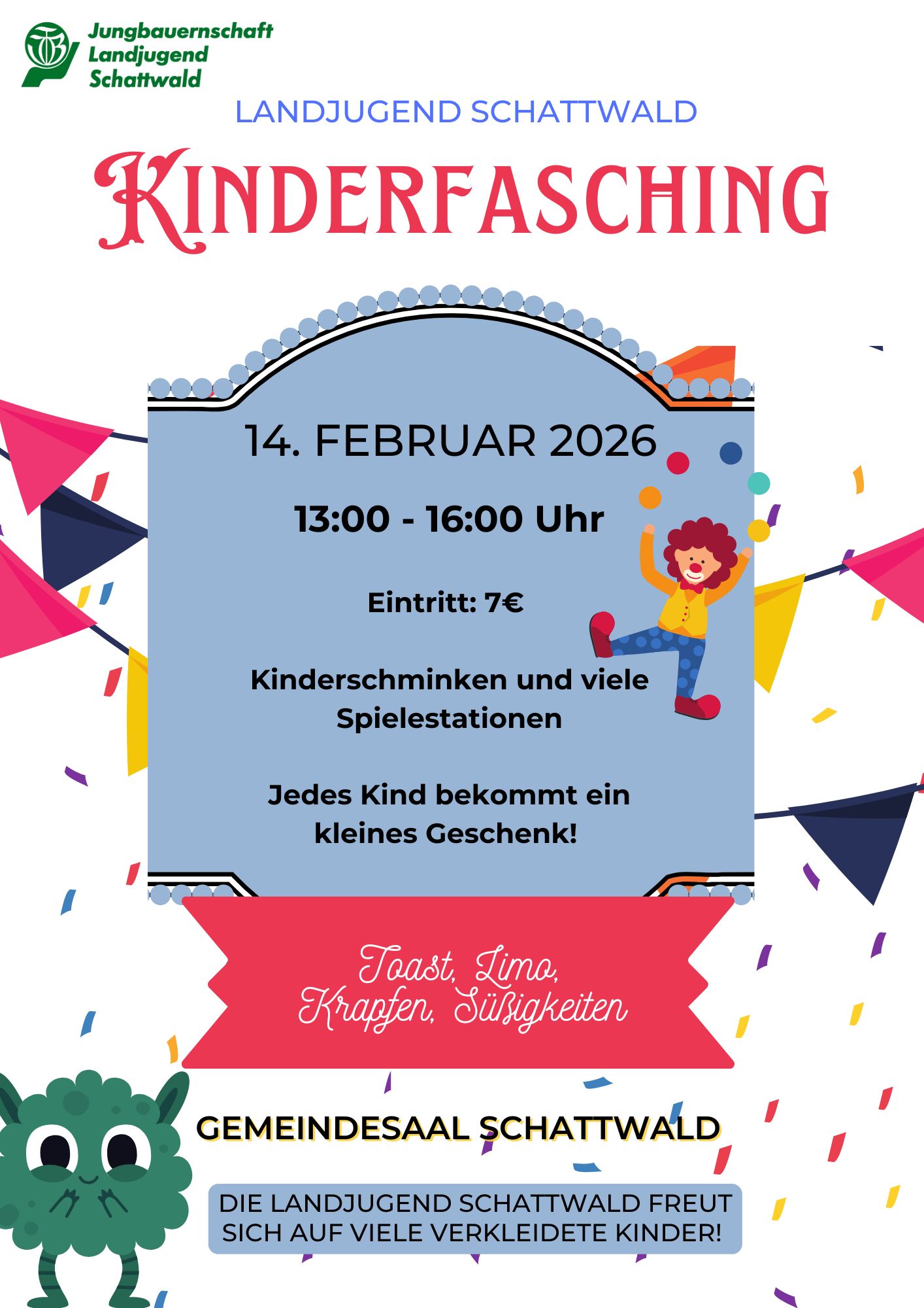 Pavillon Wies 13, SchattwaldEinladung zum Kinderfasching